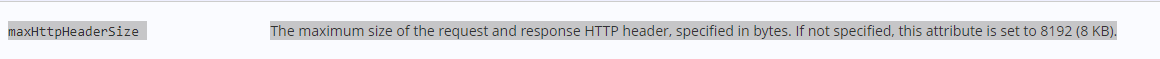 톰켓의 경우 maxHttpHeaderSize 어트리뷰트값을 지정해주면 해당 제한을 바꿀수 있다고 명시되어 있다.